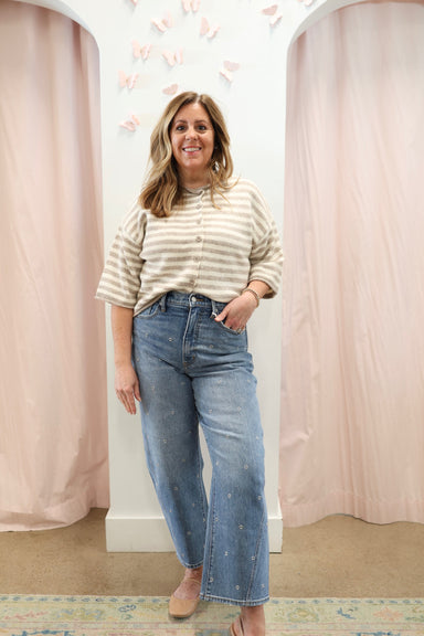 Stay cozy and stylish with the Sadie Striped Sweater! This adorable quarter sleeve, button-down design features a relaxed, oversized fit, making it...