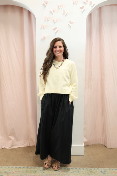 Twirl into style with our Black Polka Dot Midi Skirt! This silk, adorable piece features polka dots that add a fun touch. Perfectly pairs with brig...