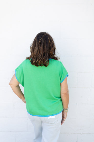 Brighten your everyday wardrobe with this charming Green Annie Stripe Top. Featuring a bright green and white striped pattern and a fun high collar...