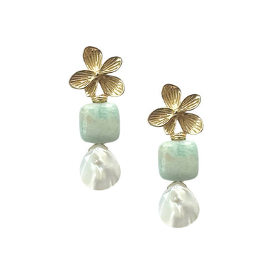 Amazonite gemstone + freshwater pearl drop earrings Made in India Material: Stone Dimensions: 2.3 in (5.8 cm)