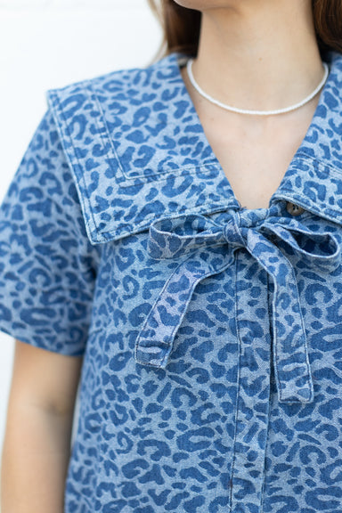 The Amelia Leopard Dress features a stylish leopard print and a charming oversized collar. This denim dress is perfect for game day looks or can be...