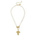 Vintage Cross On Genuine Pearl Necklace