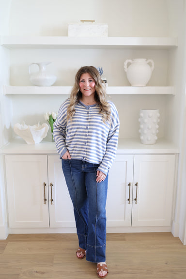 One of our most cuddly sweaters yet! This striped beauty is a must-have for fall and winter, bringing cozy vibes and cute style to every chilly day...