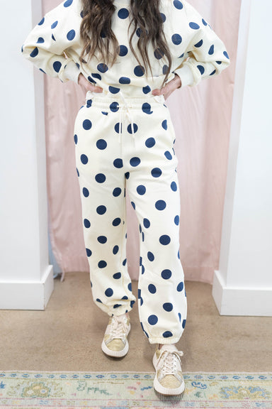 Slip into ultimate comfort with these adorable polka dot sweatpants! Featuring an all-over dot pattern, they're the perfect cozy essential for lo...