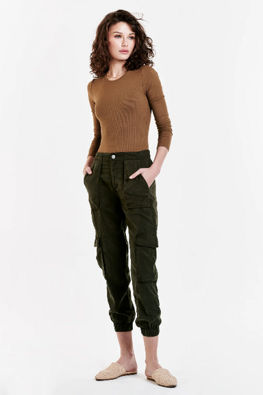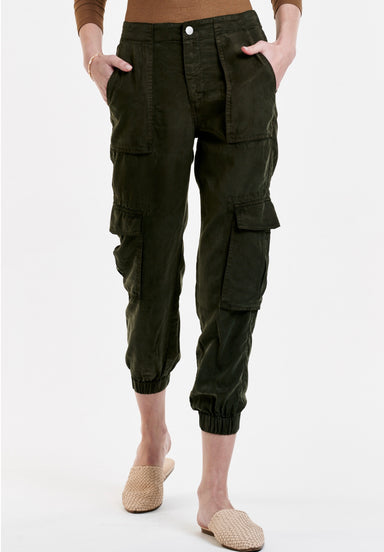 Not your dad's cargo pants. Utility made feminine with the Squad - a curved leg cargo pant featuring bronze studs throughout, and featuring a stret...