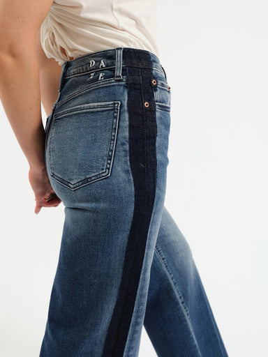 The cool girl jean just got even cooler, Far Out is a modern silhouette with black Tuxedo stripes across the sides of the legs for our take on deni...