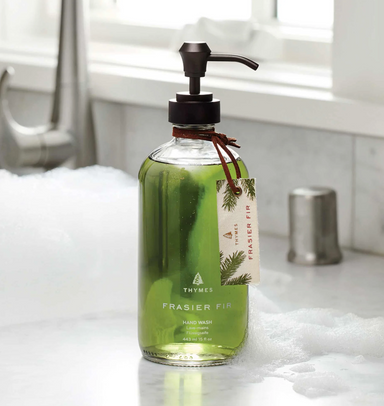 $29.00| /This beautiful glass bottle comes complete with a fabric hang tag to create an elevated sink-side piece that gently cleanses and moisturizes hands.