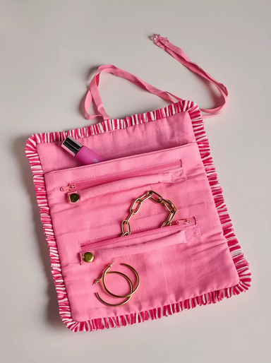 $34.00| /Measures L 7.5" x H 3" + 0.5" ruffle. Made from cotton and velvet, Say hello to the Elle Jewelry Roll — your new favorite way to travel in style! T...
