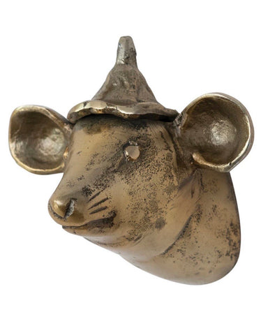 5-3/4"W x 4-3/4"D x 5-3/4"H Cast Aluminum Mouse Head w/ Hat Wall Décor Antique Brass Finish