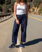 A slub tee pant made for travel—now with a playful ruffle hem for an extra feminine touch! This versatile pant also pairs well with your favorite sweatshirt or tank—for mix & match functionality. A wide leg with side slits at the ankle and an easy elastic waistband means 24 hour comfort and style, whether you're lounging around home, on the daily go or hopping on a long plane ride. Made of 100% Turkish cotton.