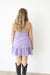 This lavender dress features a charming buckle detail that adds a playful touch. Perfect for game day or casual outings, it pairs effortlessly with sneakers for a cute, comfortable look.