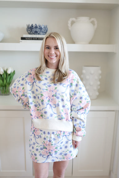 Bloom wherever you go in this adorable floral sweatshirt! Featuring delicate floral patterns and charming bow details, it's the perfect travel comp...