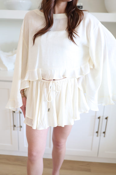 The Daphne Blouse is your go-to piece for effortless, breezy style. Crafted from sheer fabric with voluminous sleeves, this cropped top floats beau...