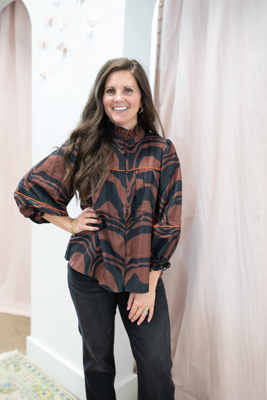 Our best-selling Gaines Blouse returns in three fresh fall prints. Featuring a flattering V-neckline, fun shoulder details, and billowy balloon sle...