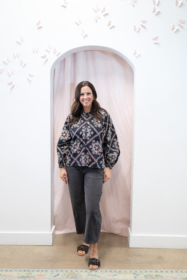 The Eloise Embroidered Top is a charming fall staple featuring delicate embroidery and a row of buttons down the center. Its cozy design pairs perf...