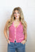 The Lizzie Striped Sweater Vest in pink stripes adds a playful touch to any outfit. Wear it alone for a sweet, simple look, layer it over your favorite long sleeve top for cozy charm, or slip it under a jacket to brighten up cooler days. Versatile and cute, this vest is perfect for mixing and matching your style.
