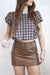Forever flattering with an effortless edge, the Maverick Mini Skirt turns heads every time you wear it. Crafted in rich chestnut brown faux leather, it hugs your curves and features an attached belt for the perfect fit. Pair it with boots and the matching Maverick Jacket for a knockout look!